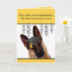 Congratulations! You did it! Now you are almost as smart as a German Shepherd! A fun, and humourous way to congratulate the new graduate. Especially the new graduate that loves German Shepherds! An adorable German Shepherd photo adorns the front of this unique Graduation card!