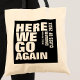 Humourous message HERE WE GO AGAIN in a bold font style, personalised with your own name and graduation class... modern black and white typography design
