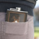 The flask itself is fine. It’s a cheap flask, obviously bought in bulk, however am prepared to overlook that. Given that it is a personalized item, I would have liked to have seen gift boxing instead of the generic packaging. Terrible printing, and/or quality. It’s a cheap, tacky vinyl. It is not cut straight and is also applied in a way that it is overhanging the bottom, causing the glue to catch on items and it will eventually roll and tear, damaging the wrap.