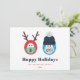Send some humour with this funny Christmas and Hanukkah themed holiday card. The design features a masked reindeer and character wearing a Star of David print winter hat and an "oy!" mask. Message, name and year are customisable. Space for optional message on the back.