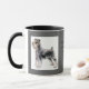 Love schnauzers and coffee? This mug features two salt and pepper mini schnauzers on the left and right sides with text in the middle. Change background colour by clicking on customise.