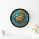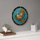 TThis image is a circular wall clock with a black rim and white numbers. The clock face features a whimsical illustration of a brown otter wearing snorkelling gear and reading a newspaper titled "OTTER TIMES" while floating on its back in blue water. The water shows gentle ripples and bubbles, and the entire scene is contained within a golden inner frame.