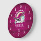 Humourous Unicorn Magical AF on Dark Red Pattern Large Clock