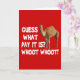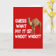 It's the classic funny Hump Day Camel "Guess What Day It Is? Whoot Whoot!" greeting card! Featuring a happy smiling camel. Grab yours today! Perfect for any occasion!