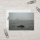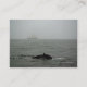A photograph of a Humpback Whale making a dive, and a tall ship in the background.