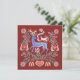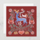 Hungarian Folk Art motif of deer on red background. Square shaped flat card.