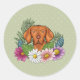 Hungarian Vizsla And Colourful Summer Flowers Gree Classic Round Sticker