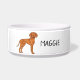 Destei's original cartoon illustration of a cute Hungarian Vizsla / Hungarian Pointer breed dog. There is also a personalizable text area for a name or other custom text such as "Dinner" or "Water", for example.