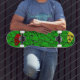 Fun Horror series: A mainly green, undead Zombie-head collage design. Get the edge over your Zombie friends and get to the humans first with this flesh-hunting skate deck!!