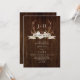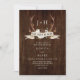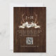This rustic boho wedding invitation with dark wood background features the monogram initials of the bride and groom framed by stag antlers which are decorated with a watercolor burgundy floral bouquet, and a banner with the phrase "The Hunt is Over." The QR code with your wedding website and RSVP information is on the back. Please contact me through Zazzle Chat if you need design tweaks, more matching products, or other colorways.