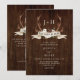 Hunt is Over Antlers Rustic Wood QR Code Wedding Invitation