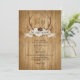 This rustic boho wedding invitation with wood background features the monogram initials of the bride and groom framed by stag antlers which are decorated with a watercolor burgundy floral bouquet, and a banner with the phrase "The Hunt is Over." Please contact me through Zazzle Chat if you need design tweaks, more matching products, or other colorways.