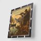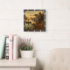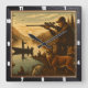 This square clock depicts a serene yet active outdoor scene at sunset, featuring a hunter aiming a rifle, fishermen in a boat and along the shore, a majestic deer, and a curious fox. The warm colours and detailed portrayal of wildlife and the sportsman's life make this clock a perfect addition to any hunting or fishing enthusiast's decor.