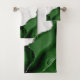 Elegant white marble and hunter green agate trimmed with faux silver glitter combine in this luxurious bath towel set design.