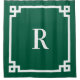 Hunter Green and White Greek Key Simple Monogram Shower Curtain