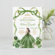 Hunter Green Bow Princess Gold Crown Quinceañera Invitation