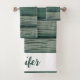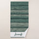 Personalise this hunter green woodgrain bath towel set for your farmhouse and cottage core friends. Rustic dark green wood grain appears on each towel with room to personalise and add a name at the bottom of the large bath towel.