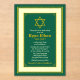 Hunter green and gold Star of David Bar Mitzvah acrylic invitation featuring Star of David and your son's Hebrew name. The Star of David symbol can be removed in the Zazzle design tool if you wish. The colours on this traditional Bar Mitzvah invitation are hunter green, gold, and bone white. These are classic, elegant colours that are preppy and always stylish. Although this is invitation is currently customised for a bar mitzvah, it could be used for a variety of Jewish special occasions... it's up to you. All you need to do is change the text and possibly remove the Star of David. The colours are also fully editable on this invitation except for the gold corner flourishes. But the hunter green and bone white colours can be changed in the design tool.