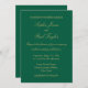 Hunter Green Golden Beige Wedding Invitation, please personalise as desired, using the online personalisation template before ordering. The invitation features stylish elegant text in a golden shade of beige (faux gold / gold look) on a classic Hunter Green background.
