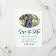 The hunter green colour of the hand lettering style "Save the Date" script font and other text can be customised.