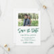 The hunter green colour of the hand lettering style "Save the Date" script font and other text can be customised.