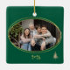 Hunter Green with 4 graphic Christmas trees in green pink and gold Christmas Card is stylish with a holiday feel. Each tree is individual and the colours are subtle and look great against the Christmas hunter green. This ornament can be personalised with your own photo, the year, your preferred holiday greeting and names. The ornament also coordinates with a range of Holiday Party stationary and party supplies. Giving a photo ornament each year should be a tradition for grandparents and family members. Yearly photo ornaments build a history to be relived every holiday season for your loved ones.