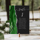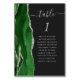 The left-hand edge of this elegant modern wedding table number card features a hunter green watercolor agate border trimmed with faux silver glitter. The word "table" appears in silver grey handwriting script on an off-black background. Add the names of your guests who are assigned to each table.