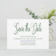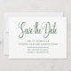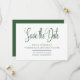 Elegant and timeless hunter green and white design. Save the Date is written in beautiful script text. Your names, wedding date, and location follow. You can include an additional message on the back.