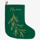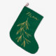 Hunter Green with Gold Graphic Leaf named Large Christmas Stocking