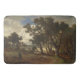 This design features a painting by the German artist Andreas Achenbach (1815–1910), who was associated with the Romantic movement and the Düsseldorf School of art. It shows a lone huntsman stalking through a rural landscape in the countryside of Germany with his rifle. The hunter is surrounded by trees and green fields. There are a couple of small birds in the cloudy sky. The original German title of the painting was "Jäger in Landschaft", which means "Hunter in a Landscape", and it was painted by Andreas Achenbach in 1854.