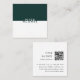 Simple and professional square business cards feature your name in bold modern lettering on a colorblock hunter green and white background. Add your contact information to the reverse side, along with a customisable QR code.