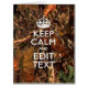 Your personalised Keep Calm saying on a deep fall season camouflage decor. A personalised Keep Calm style saying on a one of a kind gift. Humourous or whimsical try on your creative words on two editable lines of text. Remember to use CAPITAL letters for best results.