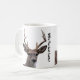 This mug has a picture of a deer I took. One side is of his face while the other side shows his face with a little more of his body. I have writing on the mug because I made this for my brother. The words are easily to take off. Mug is white and the deer is white with brown tones.