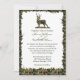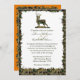 Hunting Camouflage wedding invitations - the front design features a deer (buck) silhouette with leaves and branches boarder. The designs are a woods camouflage with the text in a hunting green on top of a changeable white background. The back design is a camouflage with a buck doe heart and leaves around the boarder cut out, on top of a changeable hunting orange background. The paper by default is set to basic invitation stock, but can be changed by clicking 'choose your style' then using the Paper drop down box pick one of the options. Each invitation comes with a white envelope. To change the font, font size, or font colour, click the customise button below the Hunting Camouflage invitation. Note you may have to customise it if certain wording is too long and so it fits the design better. If your satisfied with the font setup, you can use the personalise feature to change the demonstration information to your personal details. Clicking the small images of the front/back of the card with change to that side so it can be altered. When done check the information you applied is correct and that you have no spelling errors on both sides of the card.