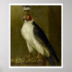 Oil painting of a falcon with hood and tethered to a perch by a 17th century unknown Italian artist.