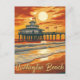 Capture the timeless charm of Huntington Beach with this downloadable vintage travel poster. This vector art design showcases Huntington Beach's iconic surf scene, perfect for adding a touch of retro California style to your home.