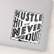 Big bold design for hurling and camogie fans and players! With the words: Hustle Hit And Never Quit and an image of a hurl / camán.