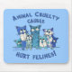 A row of cats in various shades of blue and patterning have sad faces because animal cruelty causes hurt feelings … “felines”. Word play design to go against animal cruelty. Original design by Christie Black of Creations from the Heart.