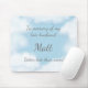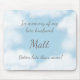 This morbidly funny mousepad has a scene of heavenly blue sky, dreamy clouds, sparking stars and the words "In Memory of my late husband [insert name] Better late than never!" Perfect for those who waited a long time for a partner.