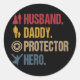 Husband Daddy Protector Hero Fathers Day Classic Round Sticker