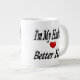 Mug with I'm my husband's better half in 3D black text. Available in several sizes and styles.