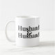 Commemorative wedding mug; simple classic type in black on white, or customise the mug colour with background. Alternate version with wedding date available.