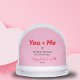 This charming snow globe design features a soft pink background with bold red lettering for "You + Me," immediately capturing attention. The equation is completed with the phrase, "THE BEST DECISION YOU EVER MADE," in a classic, elegant serif font, adding sophistication. Below, a romantic script font in red can read any custom message you wish, such as "Happy Valentine's!", "Happy Anniversary!", or a heartfelt personal dedication, followed by a customisable name, making it uniquely personal. A small red heart accent adds an extra touch of love.