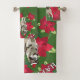 Happy Holidays, husky art and Poinsettia flowers on Bathroom Towel Set.