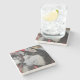 The coasters are gorgeous, a quality feel and heavy weight. They look like a precious archeological find. A rustic stone juxtaposed with a modern floral black and white print. I like the way the print goes slightly imperfect on the cut stone edges giving them a kind-of natural beauty.