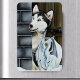 Husky dog and young white dragon leaving the winter castle to go out on an adventure.