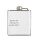 The flask itself is fine. It’s a cheap flask, obviously bought in bulk, however am prepared to overlook that. Given that it is a personalized item, I would have liked to have seen gift boxing instead of the generic packaging. Terrible printing, and/or quality. It’s a cheap, tacky vinyl. It is not cut straight and is also applied in a way that it is overhanging the bottom, causing the glue to catch on items and it will eventually roll and tear, damaging the wrap.