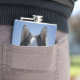 The flask itself is fine. It’s a cheap flask, obviously bought in bulk, however am prepared to overlook that. Given that it is a personalized item, I would have liked to have seen gift boxing instead of the generic packaging. Terrible printing, and/or quality. It’s a cheap, tacky vinyl. It is not cut straight and is also applied in a way that it is overhanging the bottom, causing the glue to catch on items and it will eventually roll and tear, damaging the wrap.
