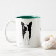 Husky Mum mug with a big nose front view of a Husky on one side of the mug and their adorable rear end back view on the other side of the mug. Background Colours and Text can be changed. Just click on Customise It button.