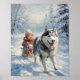 Husky Pulls a Child on a Sled Poster